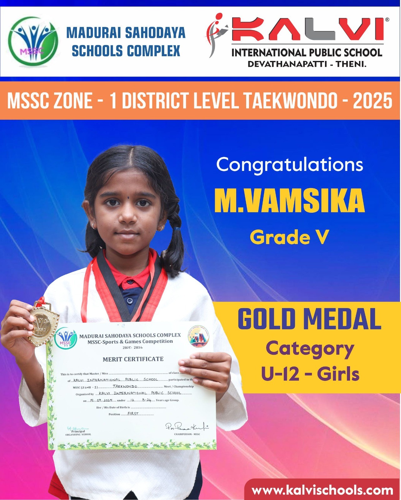 We are thrilled to congratulate for their exceptional accomplishment in clinching the Gold Medal at the MSSC Zone – 1 District Level Taekwondo Championship 2025!