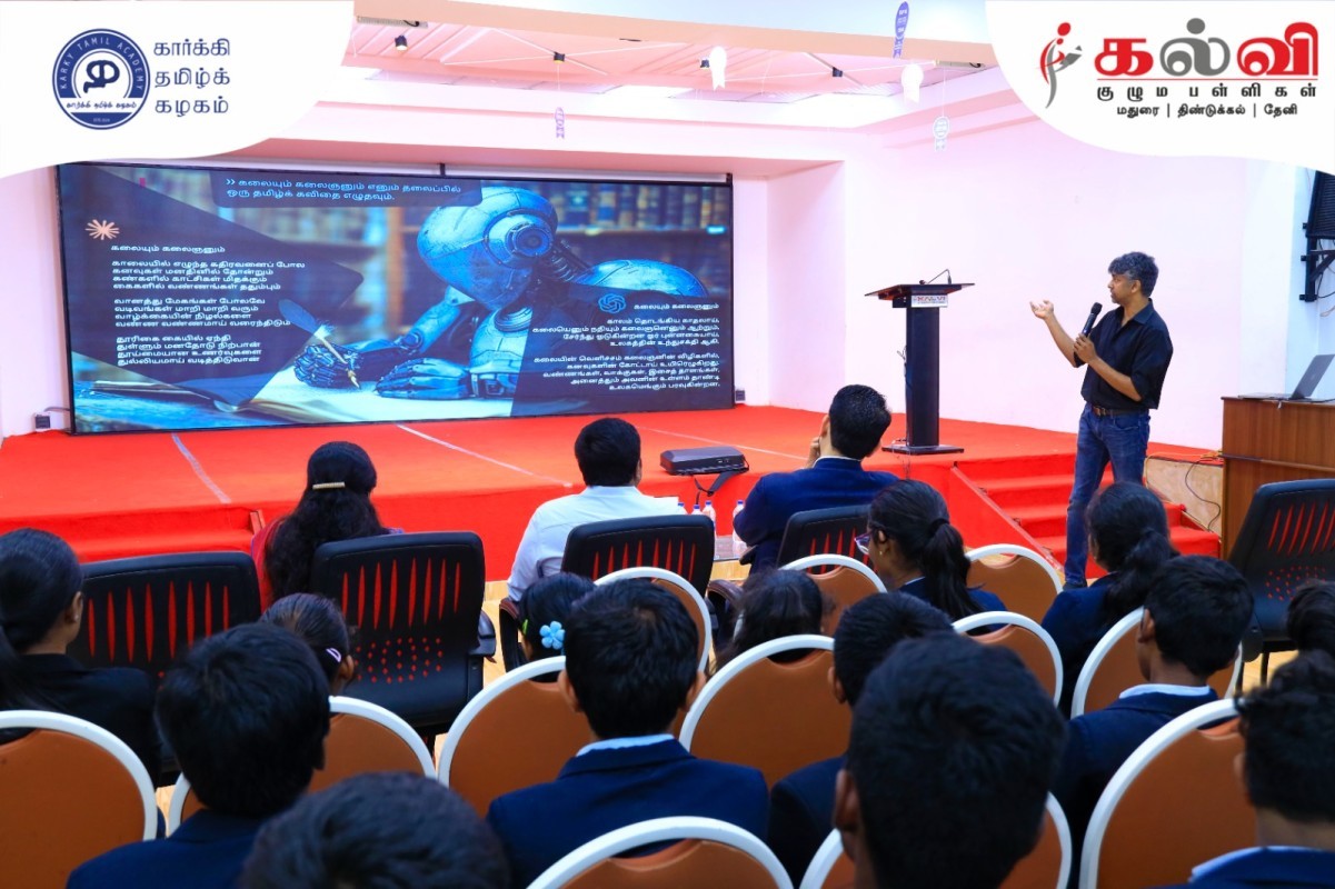 Dr. Madhan Karky, a multifaceted personality and renowned Indian lyricist, screenwriter, research associate, software engineer, and entrepreneur, graced our school with his presence to conduct an inspiring session on "AI Integrated with Arts".