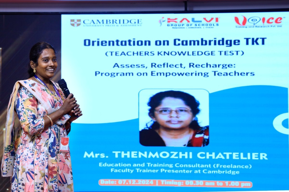 We recently hosted a successful TKT (Teaching Knowledge Test) program, conducted by Mrs. Thenmozhi Chatelier, a renowned Education and Training Consultant, Faculty Trainer, and Presenter at Cambridge.