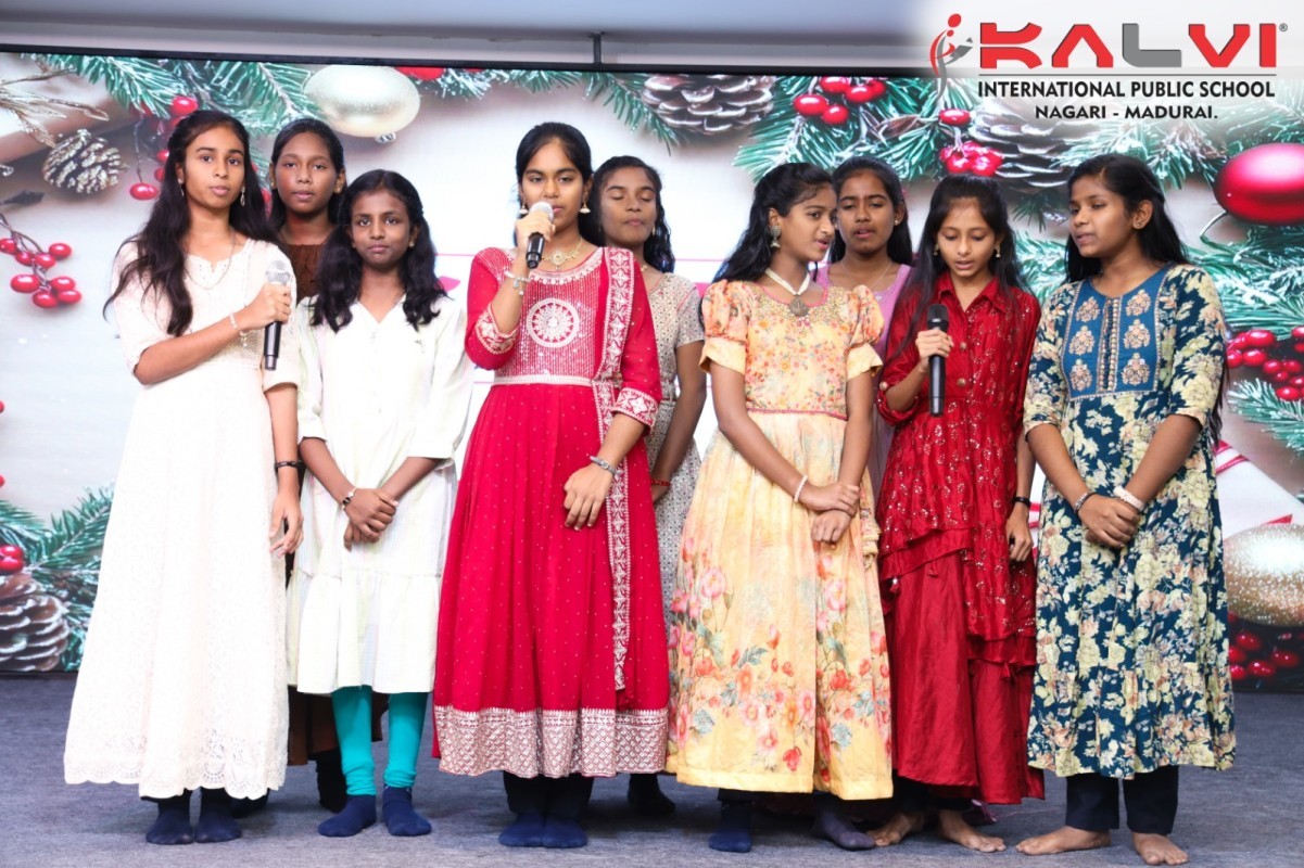We Kalvians, celebrated Christmas. The celebration began with a warm and graceful welcome speech, extending heartfelt greetings to the dignitaries, teachers, students, and all gathered. It highlighted the essence of Christmas —sharing, kindness, humility, and hope—and set a joyful tone for the celebration.