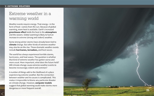 • Beautiful, full-page spreads include "How Do We Know?" sidebars that give readers insight into how scientists learn about and can know about such topics as climate, the atmosphere, and what our climate was like in the past.